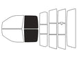 Our user-friendly, graphic interface simplifies kit selection, ensuring an easy ordering process. After specifying your vehicle's make, model, and year via the dropdown, a diagram displays all windows. Clicking product options reveals a graphic illustrating each tint section, available in 5%, 15%, 20%, 35%, 40%, or 50% VLT. Customers can deselect sections if not needed or already tinted. For example, choose 15% for front windows and visors, 40% for rear windows, 35% for cargo windows, and none for the rear windshield, all through color-coded visuals.
